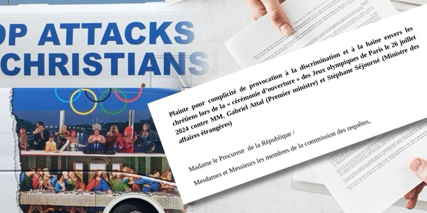 Stiamo agendo per difendere i tuoi valori cristiani presentando 10 denunce penali e amministrative contro le autorità francesi e il Comitato Olimpico Internazionale.